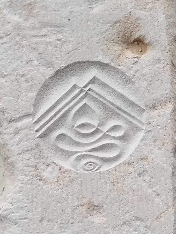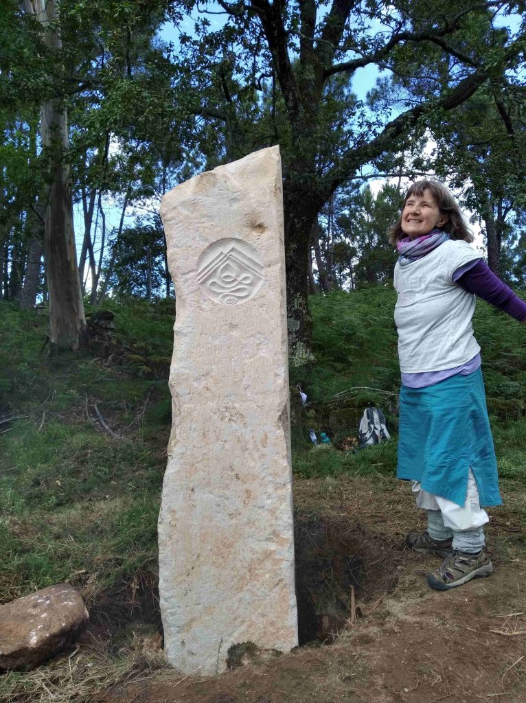 A cosmogram is an imaginative message translated into graphic form. The messaged can be perceived having different levels simultaneously. A cosmogram is unique created for a given/certain place, created in a heart-to-heart communication with the place. Lithopuncture, developed by Marko Pogacnik, we call it when placing/sticking a stone into the Earth on a certain place to give an impulse to the place. And by also placing a cosmogram on the stone, this impulse will have a certain direction.